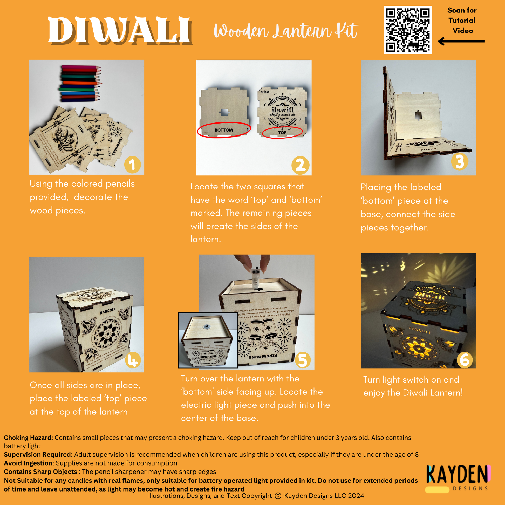 The lantern features images that signify Diwali, paired with text that explains what each symbol represents—making this craft both festive and educational. Children and adults alike can learn the meaning behind traditional Diwali symbols while creating a glowing lantern to display.